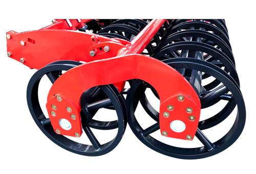 Questo è particolarmente interessante con i rizomi e altre erbacce che potrebbero ricrescere se vengono pressati dal packer subito dopo la coltivazione. Le Gauge wheels controllano la profondità di lavoro della macchina.